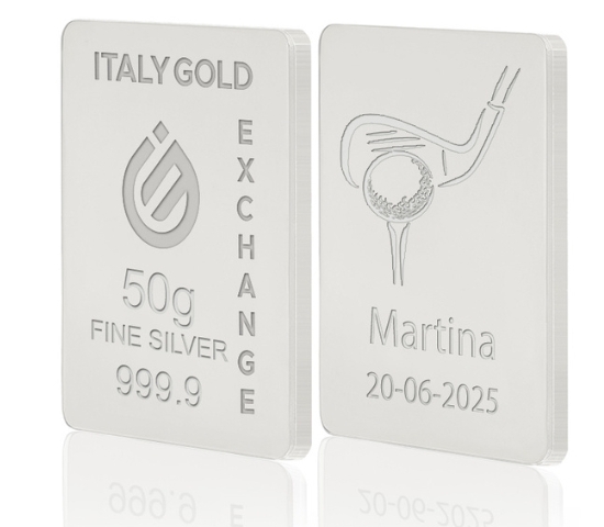 Beschreibung: Reines Sport Silberbarren Geschenk 50 g (999,9 ‰ Silbergehalt), zertifiziert von "IGE GOLD S.p.A." mit garantiertem Gehalt und Gewicht auf der Vorderseite des Barrens. Jedes Stück wird mit CNC-Fräsen und Lasern bearbeitet, um jede Gravur perfekt und langlebig zu machen. Der Barren wird von Schmieden von Hand veredelt und poliert, was dem Produkt Einzigartigkeit verleiht. Im Falle einer Personalisierung wird diese auf der Rückseite des Barrens angebracht. Sie erhalten den Barren in einer Verpackung mit Qualitätszertifikat und Platz für eine von Hand geschriebene Widmung. Optional kann eine separate Präsentationsblister erworben werden, um den Barren auszustellen. Die Zertifizierung des RJC (Responsible Jewellery Council) garantiert die Verwendung von ethisch gewonnenem metall aus der Lieferkette.