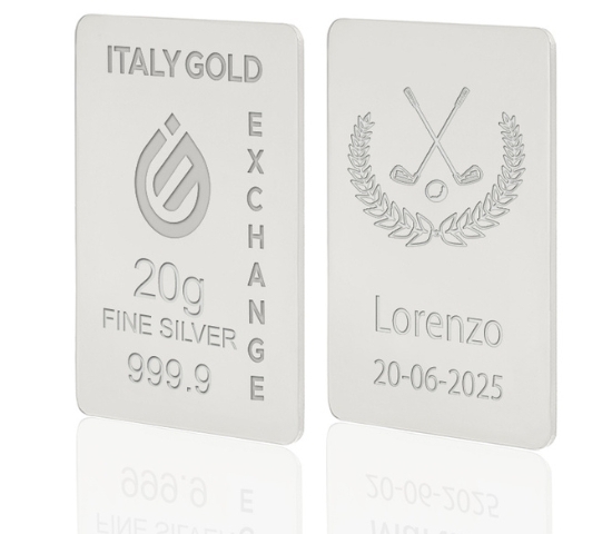 Beschreibung: Reines Sport Silberbarren Geschenk 20 g (999,9 ‰ Silbergehalt), zertifiziert von "IGE GOLD S.p.A." mit garantiertem Gehalt und Gewicht auf der Vorderseite des Barrens. Jedes Stück wird mit CNC-Fräsen und Lasern bearbeitet, um jede Gravur perfekt und langlebig zu machen. Der Barren wird von Schmieden von Hand veredelt und poliert, was dem Produkt Einzigartigkeit verleiht. Im Falle einer Personalisierung wird diese auf der Rückseite des Barrens angebracht. Sie erhalten den Barren in einer Verpackung mit Qualitätszertifikat und Platz für eine von Hand geschriebene Widmung. Optional kann eine separate Präsentationsblister erworben werden, um den Barren auszustellen. Die Zertifizierung des RJC (Responsible Jewellery Council) garantiert die Verwendung von ethisch gewonnenem metall aus der Lieferkette.