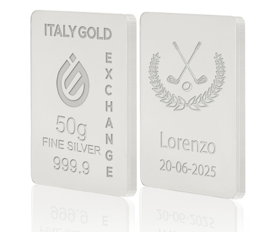 Beschreibung: Reines Sport Silberbarren Geschenk 50 g (999,9 ‰ Silbergehalt), zertifiziert von "IGE GOLD S.p.A." mit garantiertem Gehalt und Gewicht auf der Vorderseite des Barrens. Jedes Stück wird mit CNC-Fräsen und Lasern bearbeitet, um jede Gravur perfekt und langlebig zu machen. Der Barren wird von Schmieden von Hand veredelt und poliert, was dem Produkt Einzigartigkeit verleiht. Im Falle einer Personalisierung wird diese auf der Rückseite des Barrens angebracht. Sie erhalten den Barren in einer Verpackung mit Qualitätszertifikat und Platz für eine von Hand geschriebene Widmung. Optional kann eine separate Präsentationsblister erworben werden, um den Barren auszustellen. Die Zertifizierung des RJC (Responsible Jewellery Council) garantiert die Verwendung von ethisch gewonnenem metall aus der Lieferkette.