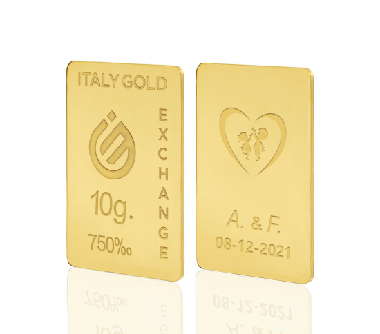 Description: Gold ingot 10gr. 18kt (750 finess) certified "IGE GOLD S.p.A." with guaranteed content and weight shown in the ingot front. Each piece is wrought with numerically controlled milling cutters and lasers in order to make each engraving perfect and long-lasting. The ingot is manually finished and polished by goldsmith artisans. This feature makes the product unique . In the case of personalization this is shown on the back of the ingot. You will receive the ingot in packaging with a certificate of quality and space for personal handwritten dedication. A display blister can be purchased separately. RJC (Responsible Jewellery Council ) certification guarantees the metal is coming from the ethical gold supply chain.