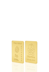 Lingote de oro certificado “Italy Gold Exchange” con título garantizado grabado con láser en el frente del lingote.