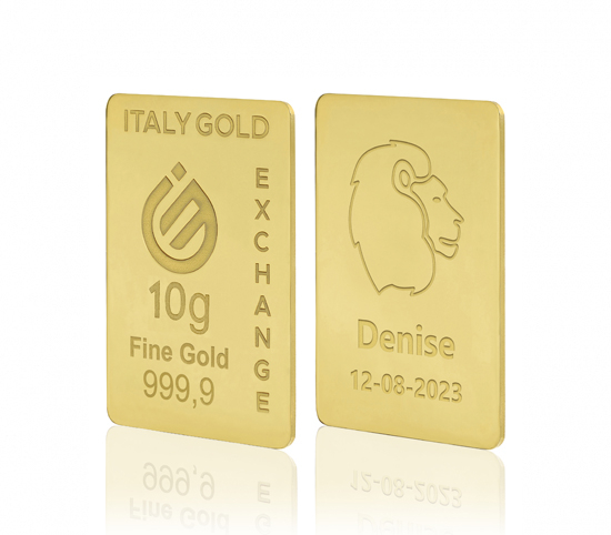 Opis: Sztabka złota w prezencie ze znakiem zodiaku Lew 10 gr. 24Kt (tytuł 999,9 ‰) certyfikowana “IGE GOLD S.p.A.” z tytułem i wagą gwarantowaną na przodzie sztabki. Każdy element jest obrabiany za pomocą frezarek sterowanych numerycznie i laserem, aby każdy grawer był perfekcyjny i e trwająca w czasie. Sztabka jest wykończona i ręcznie polerowane przez rzemieślników złota. Charakterystyka ta nadaje unikalność produktu. W przypadku personalizacji jest to podane z tyłu sztabki. Otrzymasz sztabke w opakowanio wraz z certyfikatem jakości i z miejscem na dedykację do napisania ręcznie. Można kupić oddzielnie blister do ekspozycji na ktòrym wystawić sztabkę. Certyfikat RJC (Responsible Jewellery Council) gwarantuje użycie metalu pochodzące z etycznego łańcucha dostaw złota