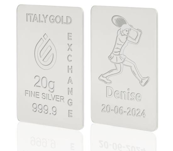 Descriere: Lingou de Argint Pur cadou sport tenis de 20 g. (titlu 999,9 ‰) certificat “IGE GOLD S.p.A.” cu titlu și greutate garantate afișat pe partea anterioară a lingoului. Fiecare piesă este lucrată cu freze cu control numeric și laser în așa fel încât fiecare gravură să fie perfectă și de lungă durată. Lingoul este finisat și lustruit manual de meșteșugari aurari. Această caracteristică conferă unicitate produsului. În cazul personalizării, aceasta este afișată pe partea posterioară a lingoului. Veți primi lingoul într-un pachet cu certificat de calitate și spațiu pentru o dedicație scrisă de mână. Un blister de afișare pe care să expuneți lingoul poate fi achiziționat separat. Certificarea RJC (Responsible Jewellery Council) garantează utilizarea metalului provenit din lanțul etic de aprovizionare cu Argint.